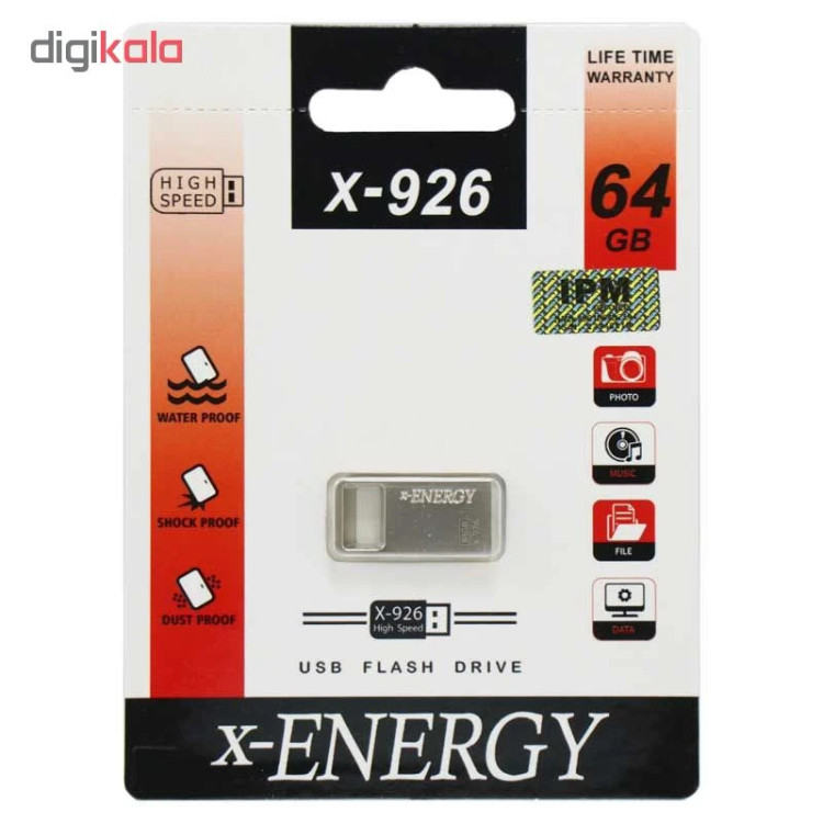 فلش مموری بندانگشتی ایکس-انرژی مدل X-926 را می توانید در جیب یا کیف خود داشته داشته باشید. وزن کم و سایز کوچک این فلش، همراه داشتن همیشگی آن را آسان می کند. ظرفیت این فلش مموری 64 گیگابایت است. طراحی این فلش به گونه ای است که می توانید یک بند به آن وصل کنید تا از گم شدن آن جلوگیری کنید. این فلش در برابر شوک، ضربه و رطوبت مقاوم است.