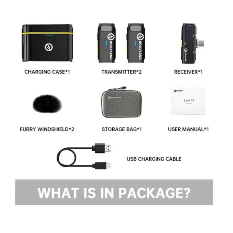 میکروفون بیسیم یقهای هالی لند LARK C1 Duo for USB-C، یک انتخاب حرفهای و قدرتمند برای تولیدکنندگان محتوا، ولاگرها و مدرسینی است که به صدای شفاف و بدون نویز روی دستگاههای دارای پورت USB-C نیاز دارند.