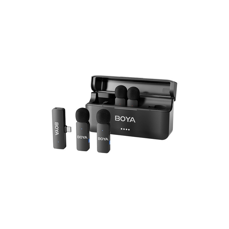 میکروفون بیسیم چهارکاربره BOYA BY-V4U USB-C یک سیستم میکروفون حرفهای و جمعوجور است که برای ضبط همزمان صدای چهار نفر طراحی شده و بهویژه برای تولیدکنندگان محتوا، ولاگرها، خبرنگاران و استریمرها مناسب است.