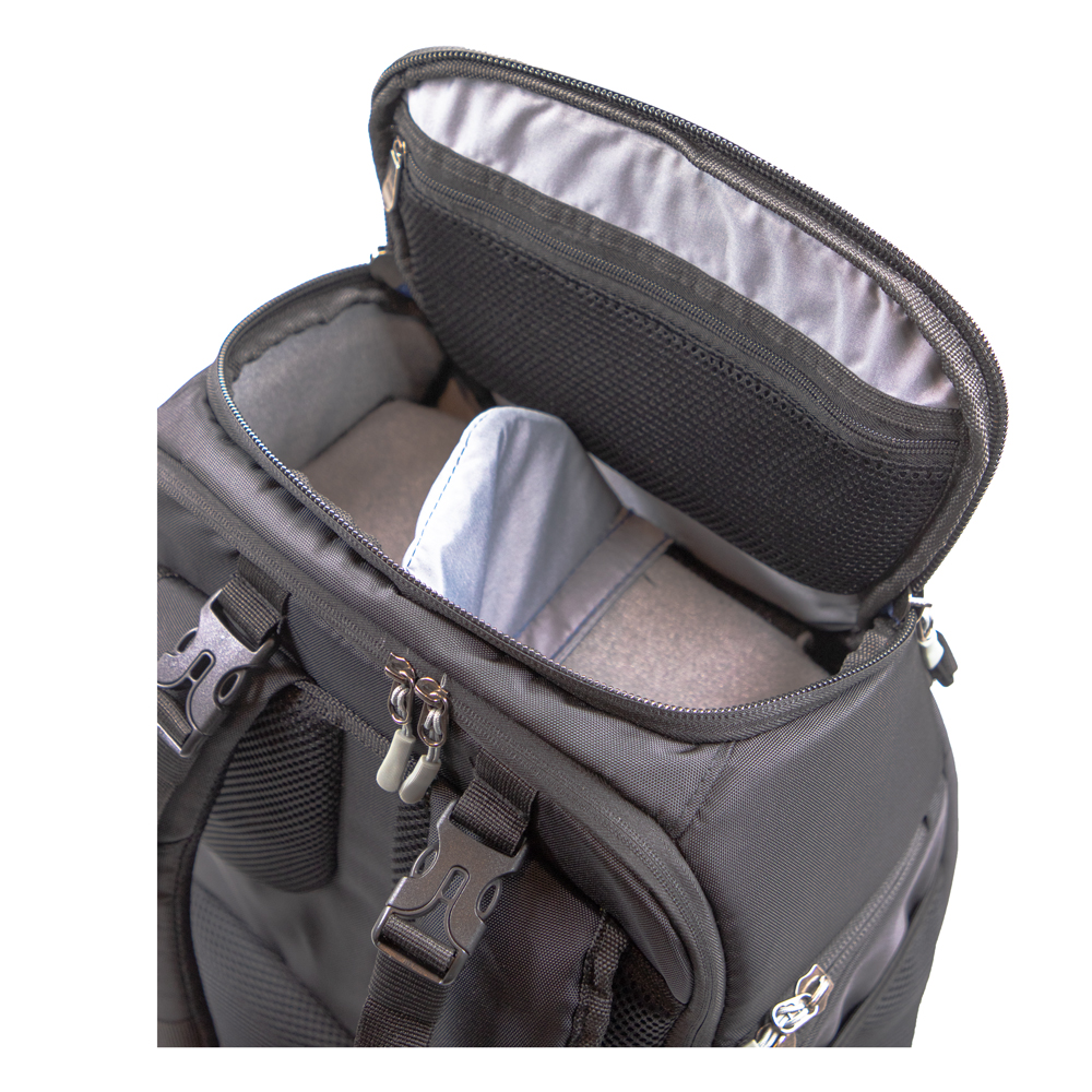 فضای کافی برای حمل یک دوربین DSLR به همراه لنز متصل و ۴ یا ۵ لنز اضافی دیگر