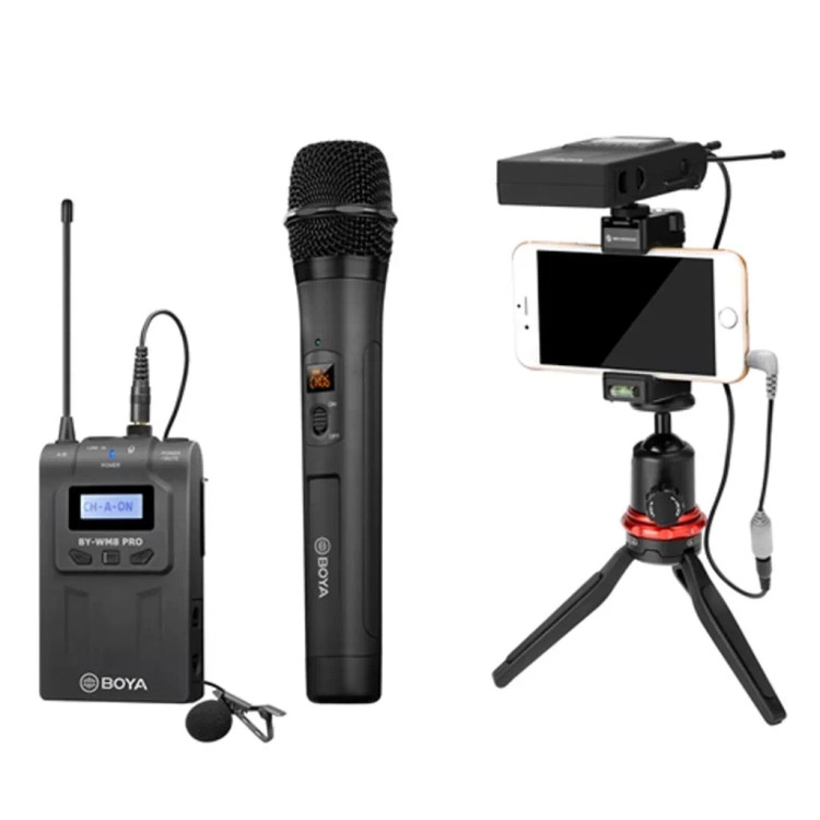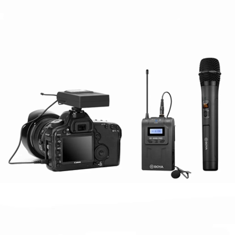 BOYA BY-WM8 Pro-K4 یک سیستم میکروفن بیسیم حرفهای با دو کانال UHF است که شامل یک میکروفن دستی، یک میکروفن یقهای و یک گیرنده میباشد. این سیستم برای ضبط صدای با کیفیت در محیطهای مختلف، بهویژه در فیلمبرداری، تولید محتوا، گزارشگری و استریمینگ، مناسب است.