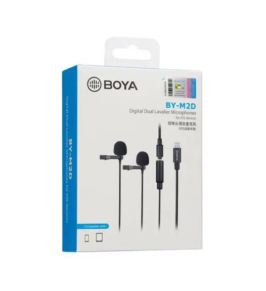 میکروفن یقه ای بویا BOYA BY-M2D Dual Clip-on Lavalier Microphone For IOS